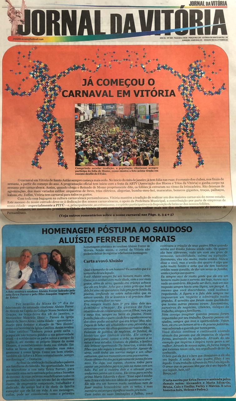 Já circulando a mais nova edição do Jornal da Vitória. Publicado em 14 de fevereiro de 2020 por Cristiano Pilako