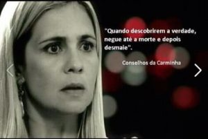 Carminha comete hybris quando o seu erro é consequência de uma paixão descontrolada, não querendo avaliar, com prudência, a relação de causa e efeito sobre o que pratica. Carminha não pede perdão por querer o perdão, mas por querer continuar enganando Tufão para manter seu namoro com Max.