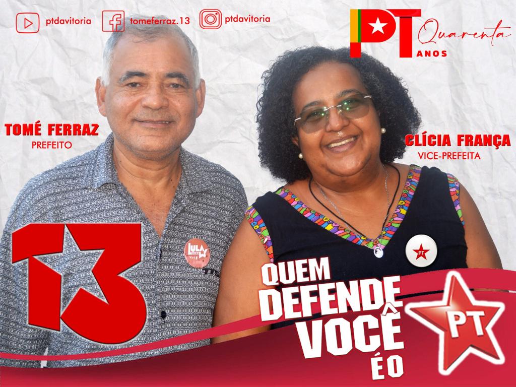 Registramos a confirmação da participação de mais uma chapa majoritária na séria de LIVE/entrevistas do Blog do Pilako. Os representantes do Partido dos Trabalhadores (13) na disputa municipal local, Tomé Ferraz e Clícia Roberta, garantiram presença.