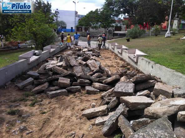 Muito bem, por ocasião da “recente” reforma ocorrida no citado equipamento público – Praça da Restauração –  na segunda gestão do Governo de Todos (2013/2016), além de outras observações, à época, aqui pelo blog, questionei à retirada das pedras do piso da praça, pois,  as mesmas, por serem  material de excelente qualidade e estarem em perfeito estado de conservação, no meu modesto entendimento,  poderiam muito bem ser mantidas. Lembremos que foi investido nessa obra, algo em torno de 2 milhões de reais do dinheiro do contribuinte.