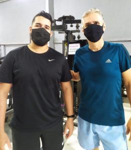 Simultaneamente a toda uma rotina alimentar, por assim dizer, segue uma outra não menos difícil: atividade de fortalecimento muscular. Dos 7 dias da semana, são 6 em movimento. 3 na academia e 3 na rua, correndo. Na qualidade de orientador, não menos competente e dedicado, destaco, nessa jornada, o empenho do Alleph Miquéias, jovem personal trainer que desenvolveu uma rotina de treinamento que, convenhamos, vem produzindo, na prática, resultados bem satisfatórios.