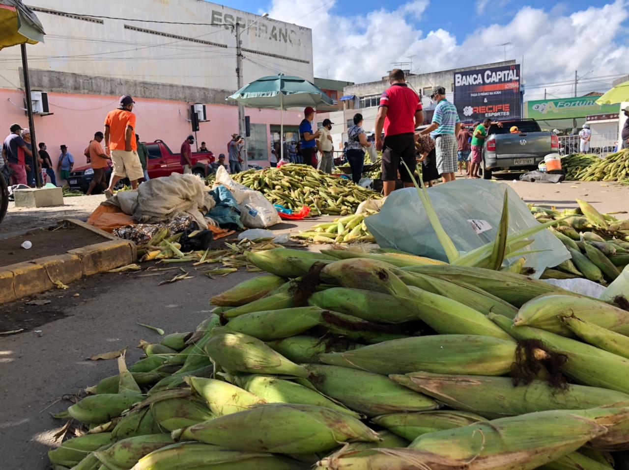 Na referida feira, observamos que os fregueses estavam cumprindo uma das recomendações das autoridades, ou seja: o uso de máscara. Já os “negociantes” do milho, nem tanto.