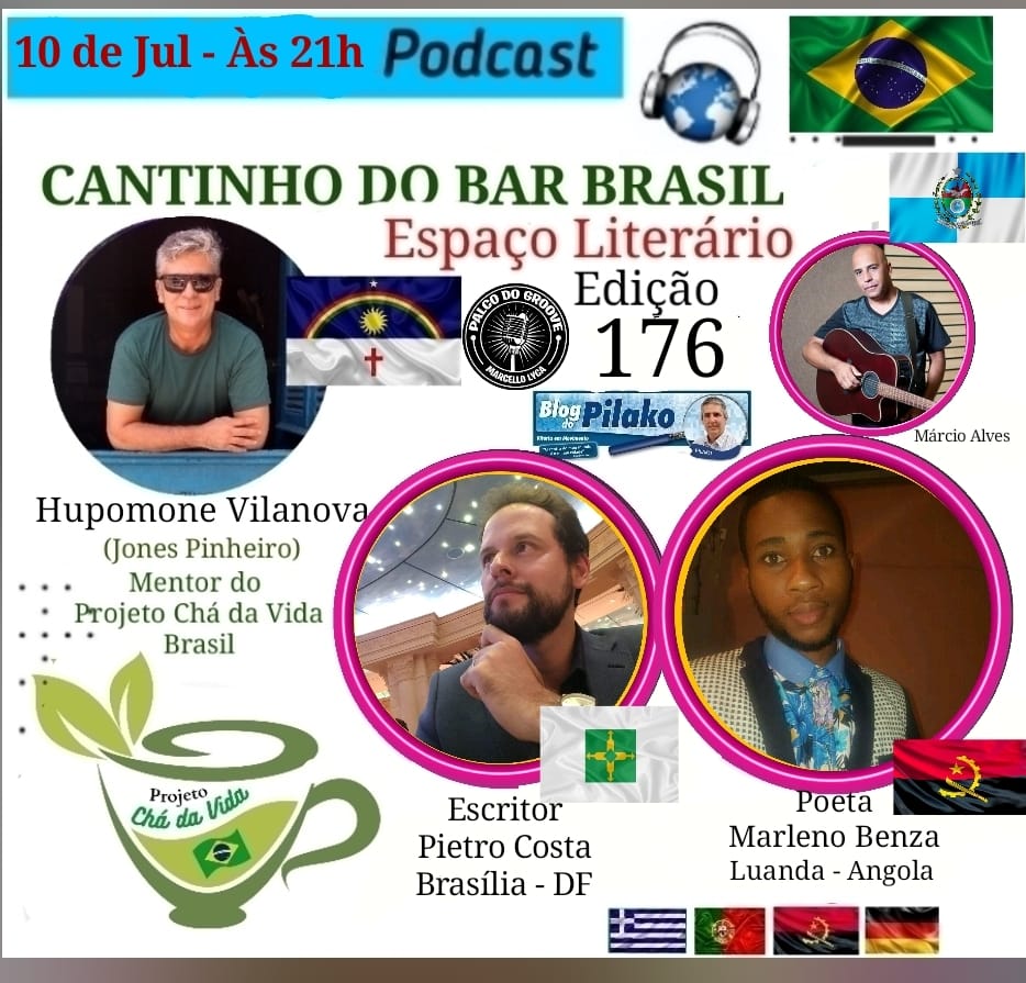1. Grande honra em ter participado, na data de 10 de julho de 2021, do Cantinho do Bar Brasil, dentro do projeto Chá da Vida, concebido pelo notável multiartista Hupomone Vilanova!!