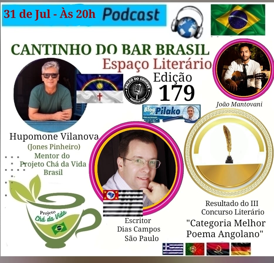 Na programação de hoje apresentaremos o nosso convidado de honra, direto do Estado de São Paulo para o Cantinho do Bar Brasil, estaremos com o Escritor Dias Campos – Embaixador da Paz pela Organização Mundial dos Direitos Humanos.