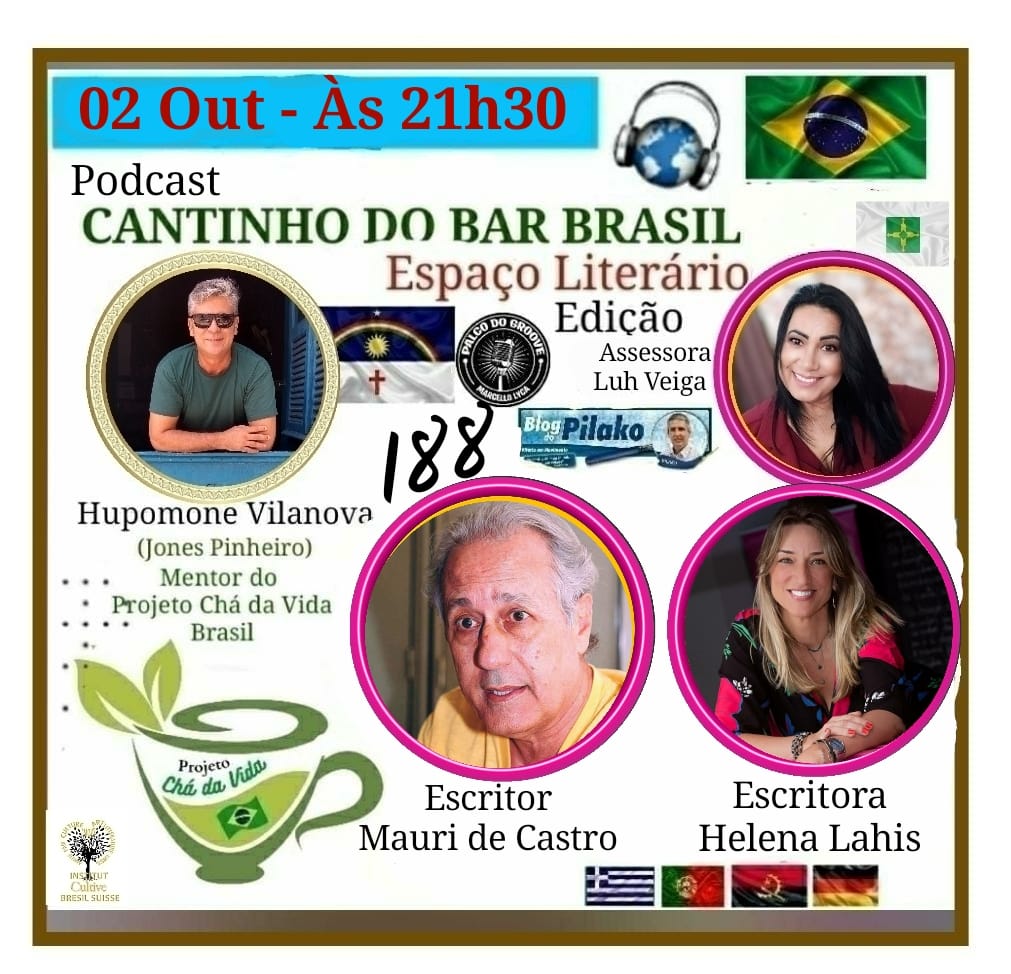 Olá pessoal! Sejam todos bem vindos ao nosso Espaço Cultural. Para essa edição apresentarei para vocês ouvintes do Blog do Pilako, dois grandes nomes da nossa literatura, Mauri de Castros escritor e dramaturgo, está entre os dez melhores atores do teatro brasileiro e a Helena Lhais uma verdadeira fortaleza humana, pedagoga, escritora, editora e fundadora da Editora Lago de Histórias. Helena Lhais dirige a Casa Cultural Lago de Histórias (RJ), espaço onde acontecem oficinas de escrita criativa, oficinas de ilustração, visitas literárias para alunos de escolas das redes pública e particular, e contação de histórias. Estaremos com Mauri de Castro, formado em Artes Cênicas. Uma vida inteira de Teatro, Cinema / TV , Literatura , Música e humor; atuou em mais de 82 espetáculos, teatrais, filmes, com diretores como Fábio Barreto, João Batista de Andrade, Geraldo Moraes e Breno Silveira; trabalhos para TV, entre eles, a novela O Rei do Gado; Seriados na TV Educativa do Rio (As Aventuras do Tio Maneco / Flávio Migliaccio); Escolinha do Professor Raimundo; A Praça é Nossa; Domingo Legal (dupla satírica Vira & Mexe); dirigiu peças de teatro, entre musicais, infantil, comédias e dramas Dezenas de composições gravadas por outros cantores e já gravou 6 Cds.