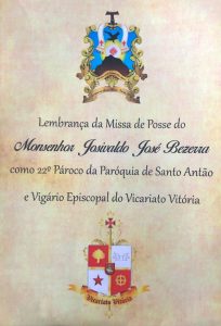 A partir da noite de ontem, segunda-feira, 31 de janeiro de 2022, a nossa Igreja Matriz de Santo Antão, oficialmente, passou a ser comandada pelo Monsenhor Josivaldo José Bezerra. É 22º segundo Pároco e 2º Vigário Episcopal do Vicariato Vitória de Santo Antão. Na qualidade de vigário paroquial, assumiu o Reverendíssimo Padre Djanilson Pereira.