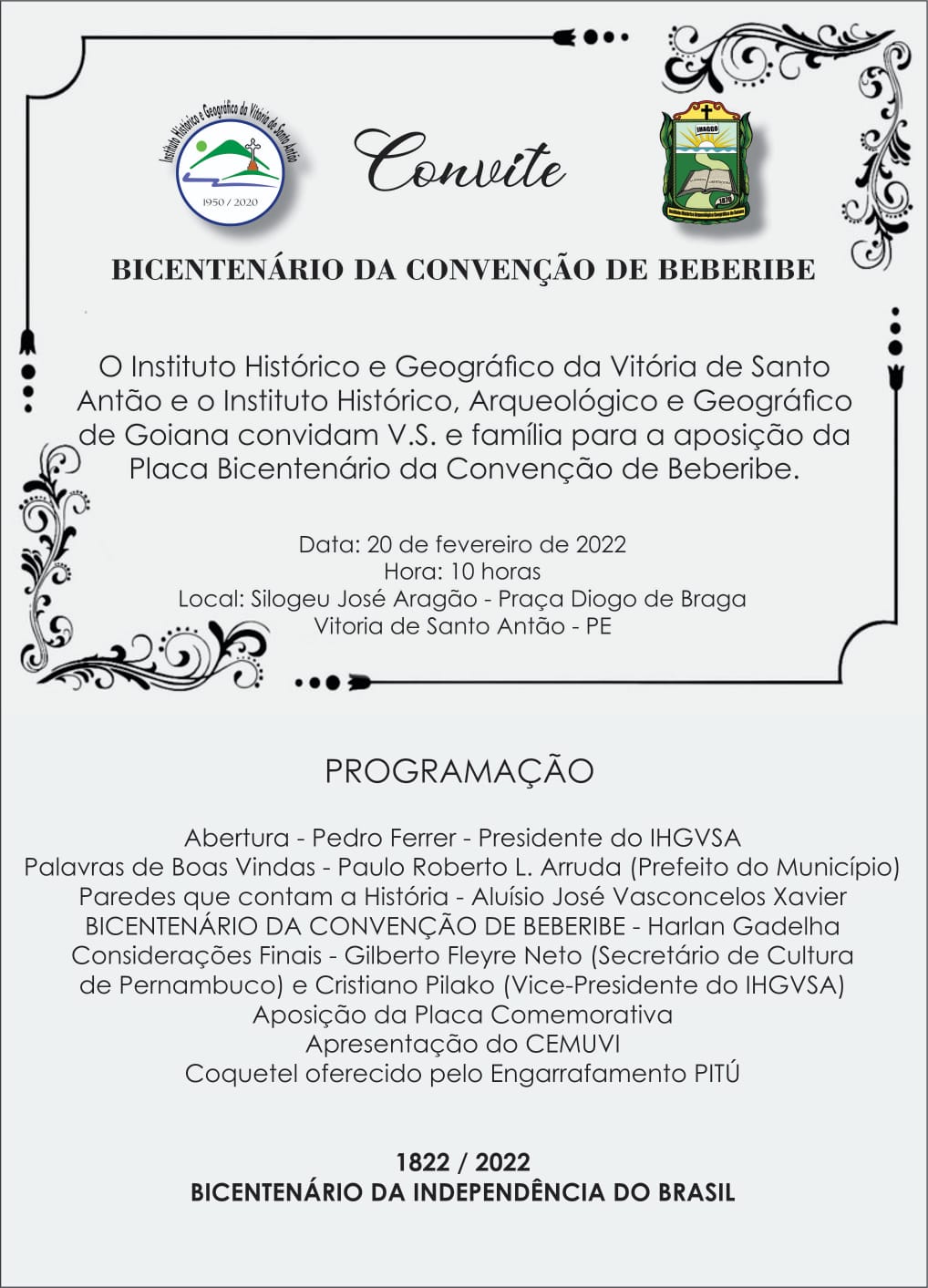 Com prévio agendamento, na manhã de ontem (15), na qualidade de vice-presidente do Instituto Histórico e Geográfico da Vitória, fiz parte da comissão que se reuniu com prefeito Paulo Roberto juntamente com alguns secretários. Capitaneada pelo presidente da instituição, professor Pedro Ferrer, o encontro serviu para alicerçar o “plano de retomada” das atividades – pós pandemia – da “Casa do Imperador”. Desde os primeiros passos – década de 1950 – que a municipalidade se configura no porto seguro do maior projeto cultural da Vitória de todos os tempo, ou seja: Instituto Histórico.