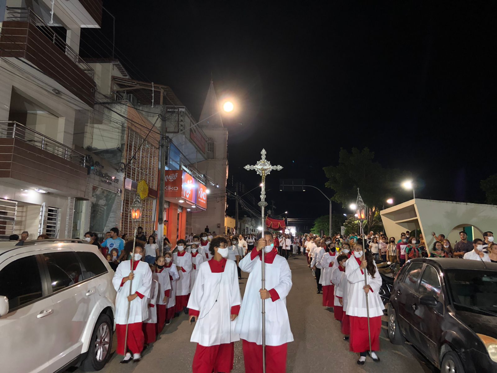 Na noite do feriado da “Sexta-Feira da Paixão” – 15 de abril – nossas lentes registraram a passagem da “Procissão do Senhor Morto”, pelo Pátio da Matriz. A celebração católica é um chamamento à reflexão dos últimos momentos de vida e também da morte do Senhor Jesus Cristo. Veja os vídeos.