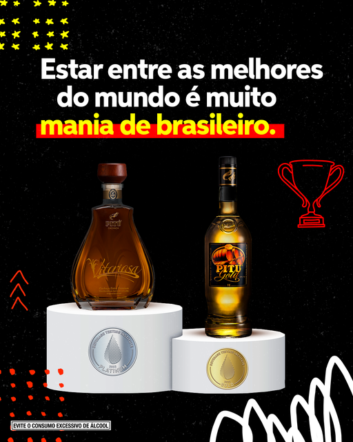 Pela quarta vez consecutiva, a Pitú fez bonito na avaliação do BTI, um dos mais respeitados institutos de análise de bebidas alcoólicas do mundo. Este ano, a Pitú Gold levou medalha de ouro e a Pitú Vitoriosa a medalha de platina. Isso só confirma o que a nação pituzeira já sabe: Gold e Vitoriosa estão entre as melhores e mais apreciadas cachaças envelhecidas do mundo inteiro. Bora brindar essa conquista?