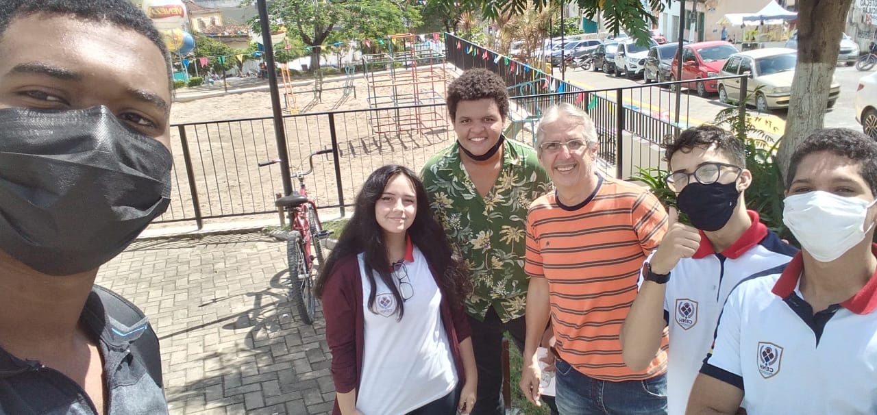 Em ato continuo, puxei conversa perguntando-lhe o nome (Pedro). O grupo que estava com ele – Carmerindo, Wladimir, Daniel e Ariel – se aproximou e começamos um dialogo sobre a história e curiosidades da nossa cidade. Ali mesmo, aos “pés” do Anjo da Vitória, o papo fluiu naturalmente. Todos interessados……