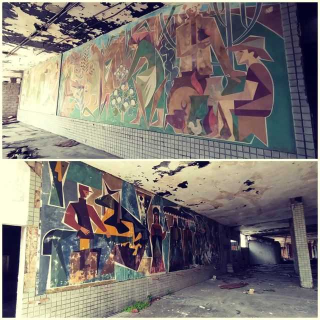 Dois painéis de Lula Cardoso Ayres perecem nas instalações do antigo aeroporto do Recife.