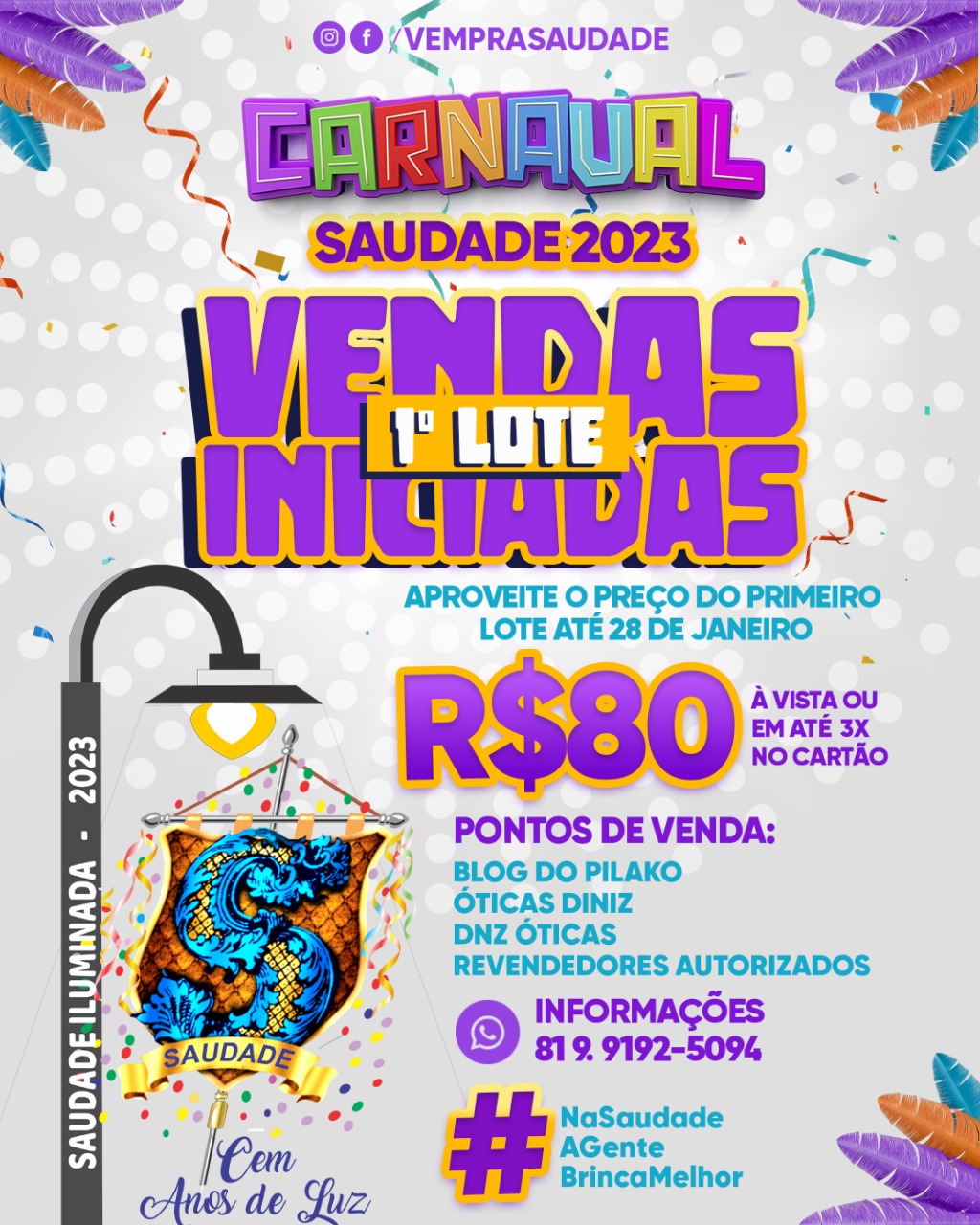 Saudade – Virada de lote acontece no dia 28/01 Publicado em 20 de janeiro de 2023 por Cristiano Pilako