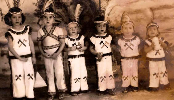 Carnaval da criançada de 1960. Estão na foto: Jandira, Antonio Ferrer, Joel Neto , Aurinha, Elminho e Ieda. Foto: Acervo pessoal de Joel Neto.