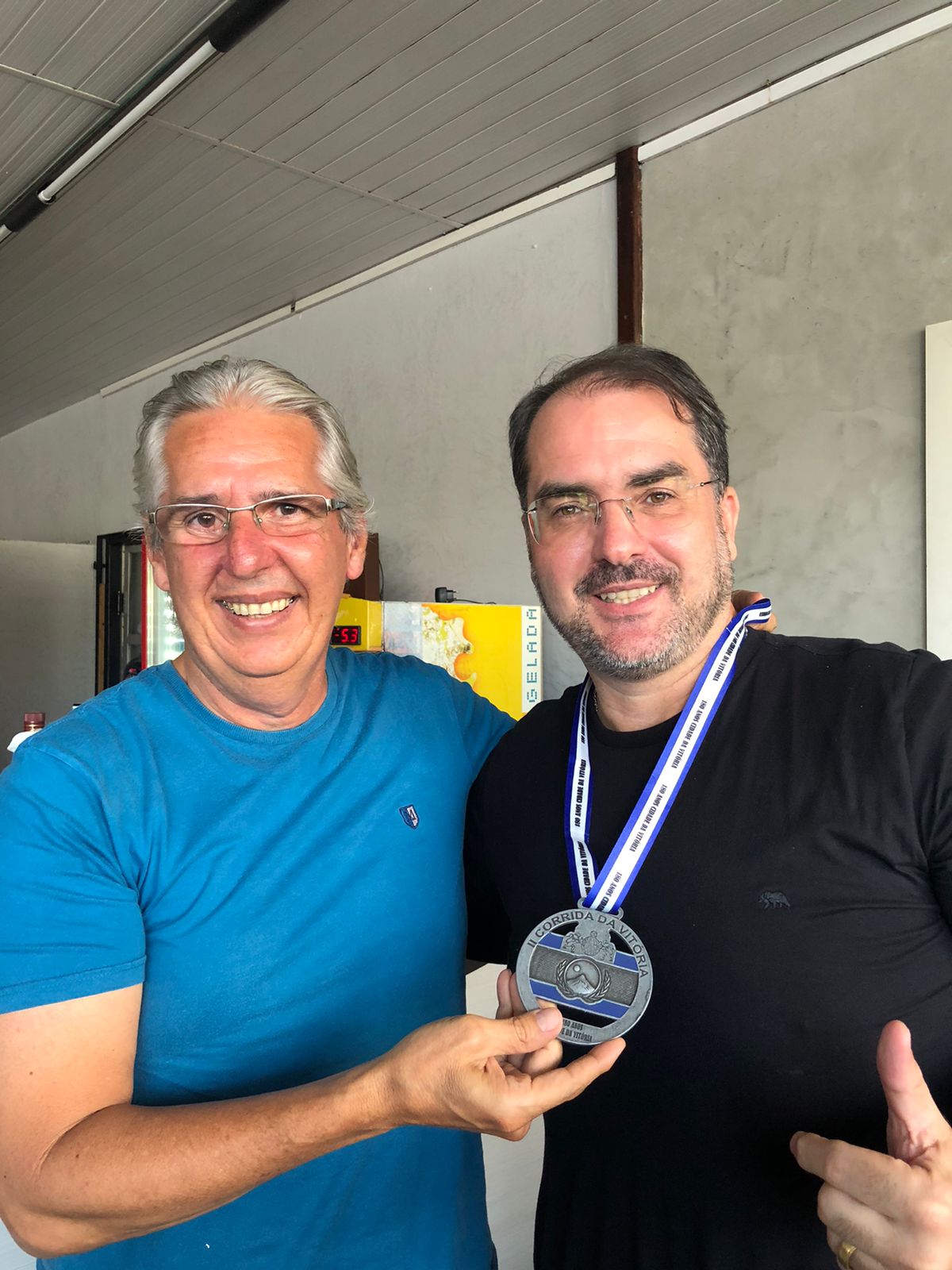 Nesse contexto, convidado à participar da 2ª Edição da Corrida e Caminhada da Vitória, mas que por motivo de viagem não pode comparecer, na manhã de ontem (10), estive no seu restaurante – Carnes & Galetos – para lhe condecorar, por assim dizer, com a medalha do evento, no sentido da sua expressiva e saliente vitória pessoal.