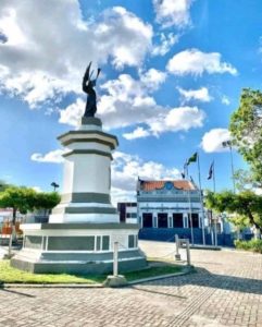 Monumento localizado na Praça 03 de Agosto. Bairro do Livramento-Vitória de Santo Antão- Pernambuco-Brasil. Esta Magnifica estátua de ferro que representa o Anjo Gabriel segurando a trombeta, possui 2.20 metros de altura e foi encontrada próxima ao Recife , após um naufrágio de um navio de bandeira americana, em 1878. A peça foi leiloada e comprada pelo então tenente-coronel da Guarda Nacional Belmiro da Silveira Lins ,o Barão de Escada, que a repassou para o primeiro Arcebispo de Olinda e Recife, Dom Luis Raimundo da Silva Brito.Durante uma visita à Paroquia de Santo Antão,em 1902, o arcebispo resolveu doar o monumento do anjo para homenagear a vitória na Batalha das Tabocas. Em 27 de Janeiro de 1905 , o monumento foi erguido em homenagem à vitória dos Lusos-Brasileiros sobre os Holandeses, na Batalha das Tabocas em 03 de Agpsto de 1645. Existe uma lenda que entrou para o folclore local, que Quando o anjo tocar a trombeta o mundo irá acabar. Esta imagem foi captada pela lente da minha Camara fotográfica durante um passeio sentimental pela minha querida terra mãe Vitória de Santo Antão.