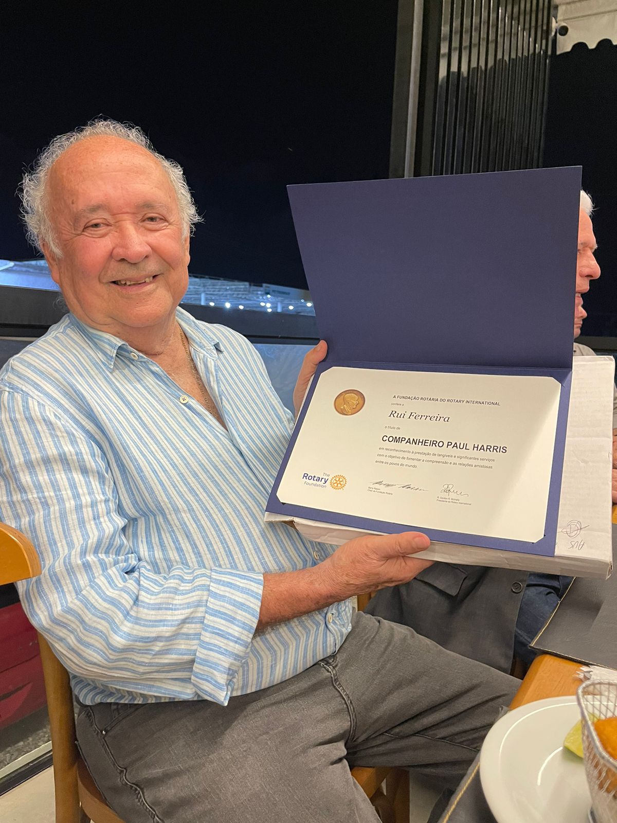 Na noite de ontem (26), em reunião festiva, o Rotary Clube da Vitória, em reconhecimento aos relevantes serviços prestados à comunidade, homenageou, com o “Título de Companheiro Paul Harris” – a maior Comenda do Rotary Internacional – o conceituado médico Rui Ferreira.