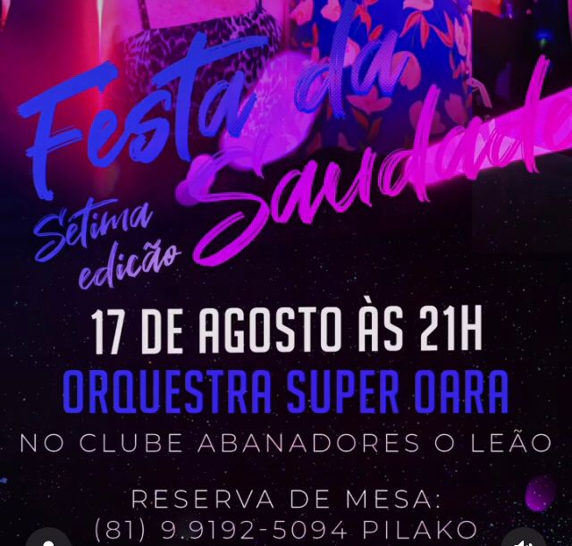 7ª Edição da Festa da Saudade – Orquestra Super Oara! Publicado em 26 de julho de 2024 por Cristiano Pilako