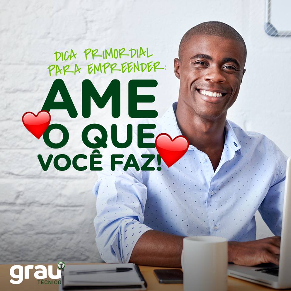 Essa dica vale para quem quer ser um empreendedor e também para qualquer outro profissional, seja ele autônomo ou não! Escolha um curso que combine com seus desejos e interesses e atue na área que você gosta! Quando a gente ama o que faz, tudo fica melhor! #GrauTécnico