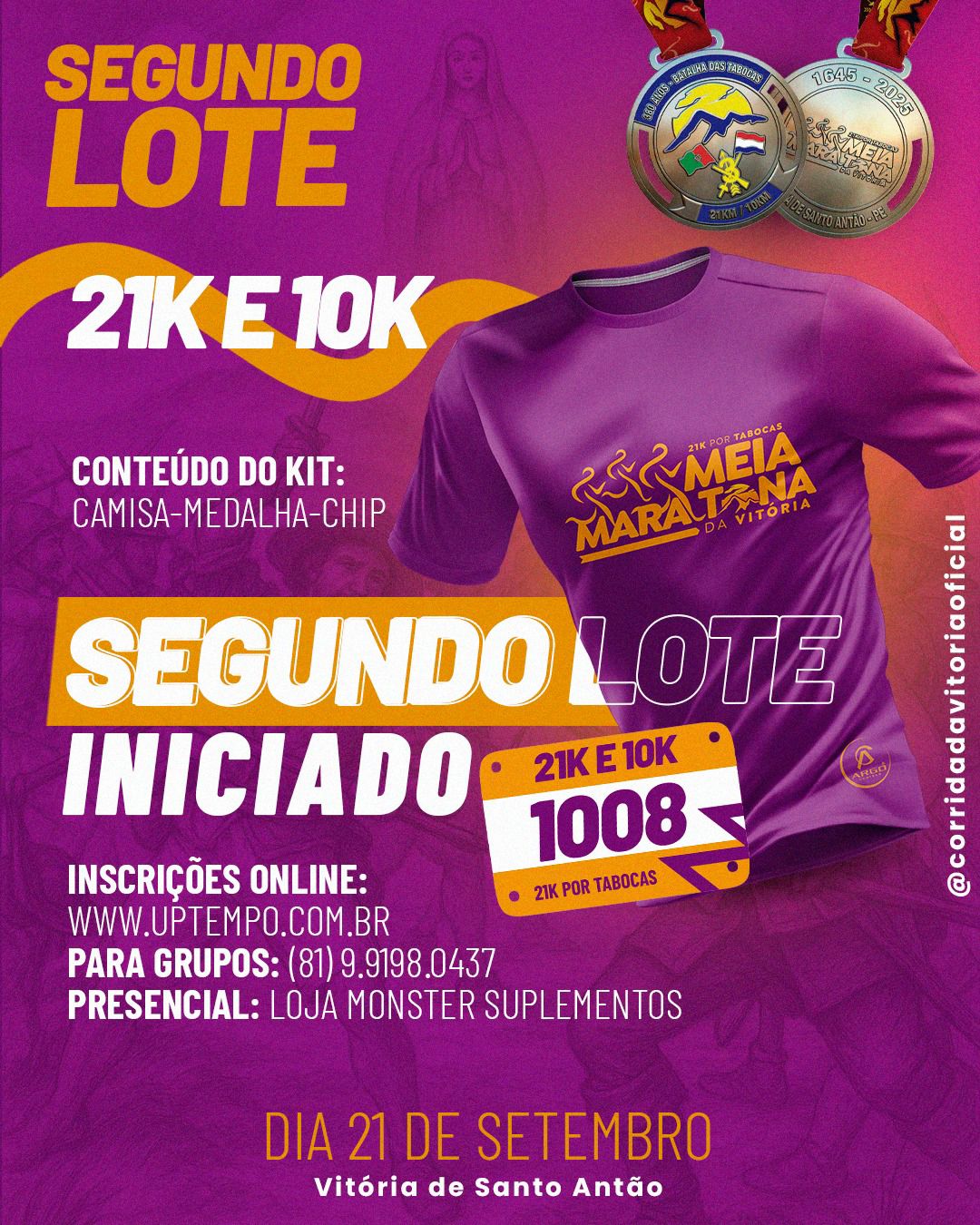 Portanto, não é exagero dizer que a medalha e o troféu da  Corrida da Vitória, 5ª edição, ano  2026, é uma peça rica e valiosa: rica,  porque sintetiza a história de um povo . Valiosa,  porque será conquistada pelo esforço consciente, algo próprio da corrida de rua. Viva os 400 anos de fundação da Vitória de Santo Antão!!!