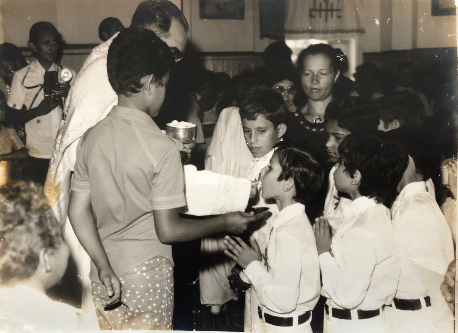 No longínquo domingo, dia 09 de novembro de 1975, guiado pelo farol da expectativa, aos 8 anos de idade, acordei-me sem  a necessidade de fatores externos. Isto é: ninguém precisou me chamar. Após muitos encontros, aulas  de catecismo e ensaios, finalmente, havia chegado o dia da minha primeira comunhão.