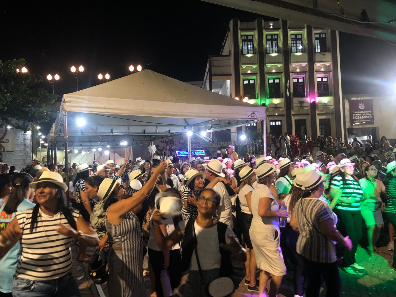 Em mais uma  atividade, o Grupo Seresteiros da Vitória promoveu, na noite da última sexta-feira (24), um  encontro dançante. Dessa vez, a  celebração festiva aconteceu no Pátio da Estação Ferroviária.