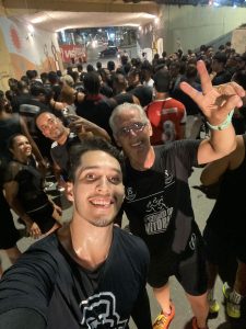 todos vestidos com peças na cor preta. Vestidos de branco, só os ADMs. À noite da terça-feira foi a escolha. Ontem (28), foi a minha  primeira experiência, juntamente com o meu filho,  Gabriel. Foram pouco mais de 6km de percurso.