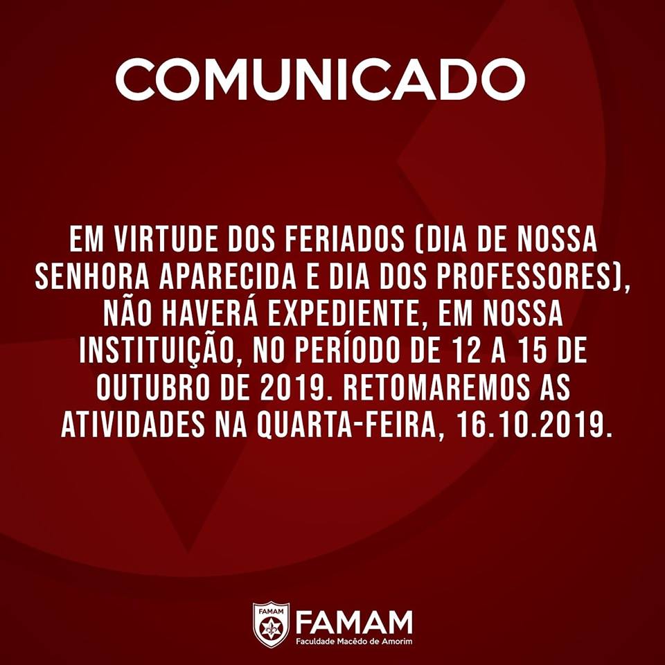 VESTIBULAR 2020 – AGENDADO DIARIAMENTE – FAMAM – FACULDADE MACÊDO DE AMORIM – A SUA NOVA FACULDADE! Inscreva-se através do nosso portal: 🖥www.escolhafamam.com.br ou pelos telefones: ☎ 81 3523.1559/ 📲 98811.1559 (Whatsapp).