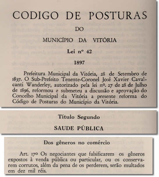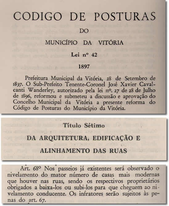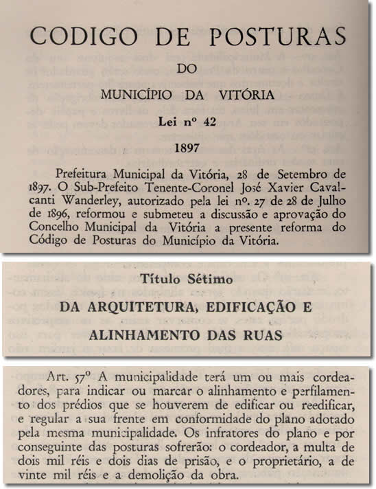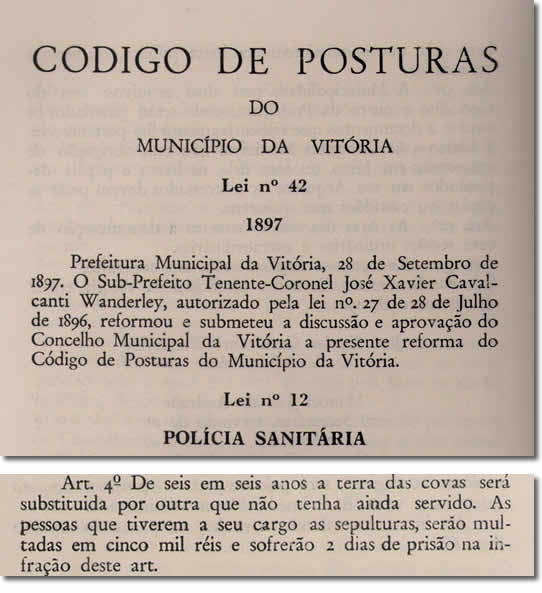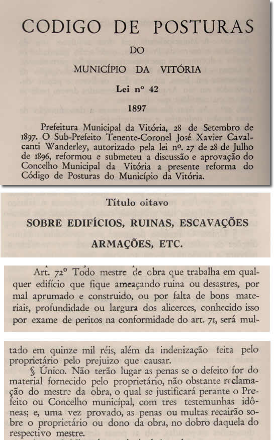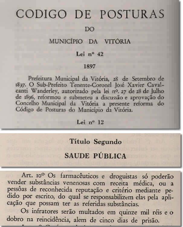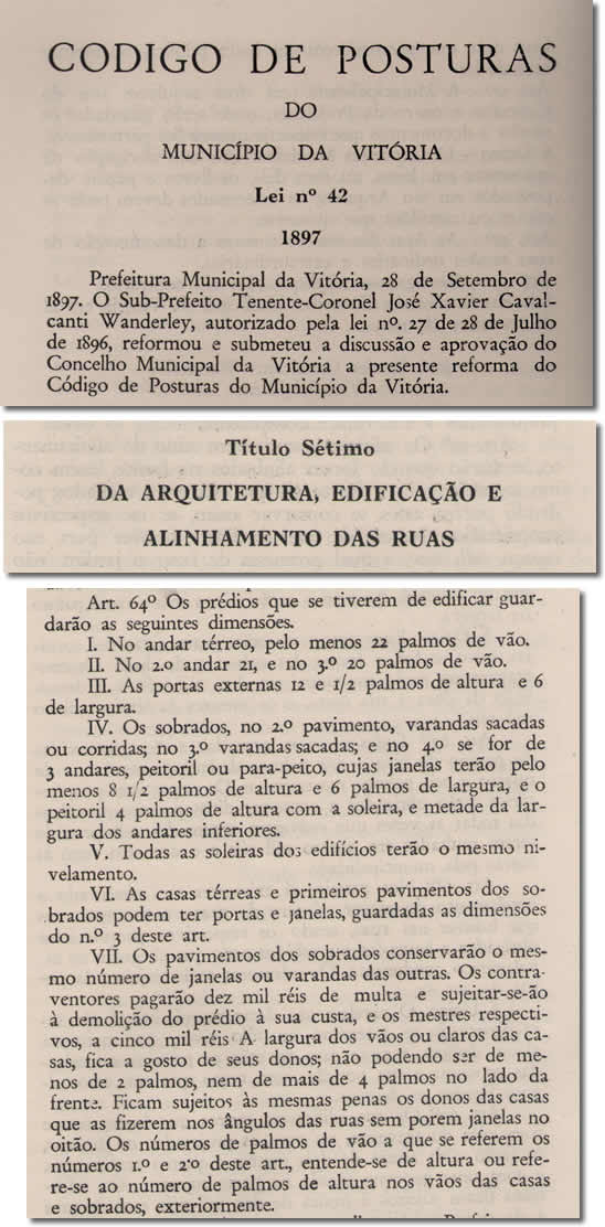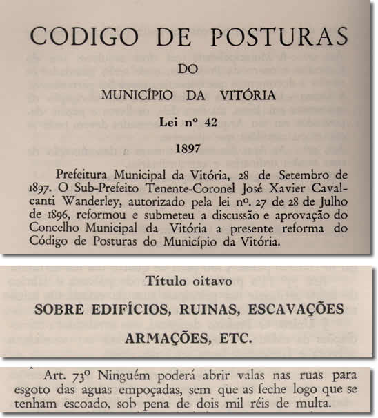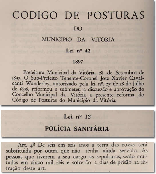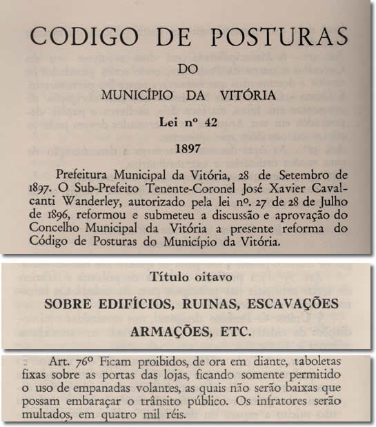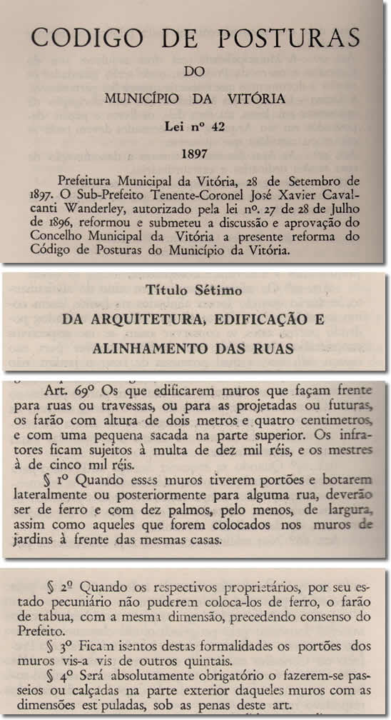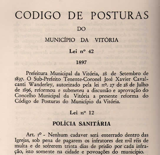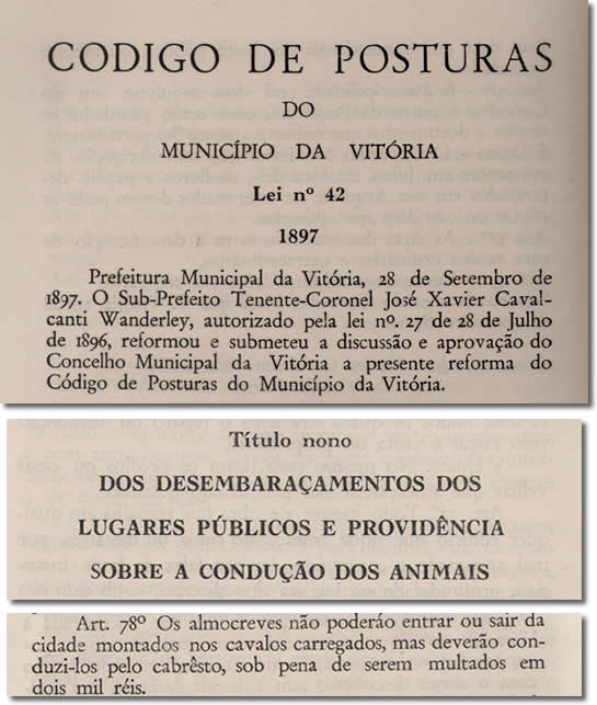 Conforme havíamos postado ontem, publicaremos trechos do CODIGO DE POSTURAS do município da Vitória, datado de 1897. Os trechos foram retirados do volume 07 da revista do Instituto Histórico e Geográfico da Vitória, editada em 1977. São muitas curiosidades, que valem a pena serem disponibilizadas em nosso blog.