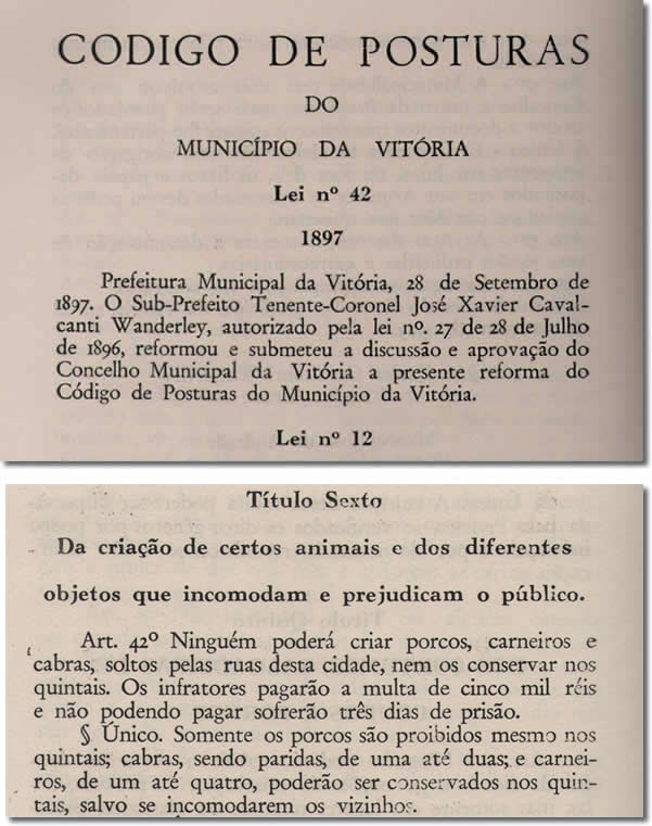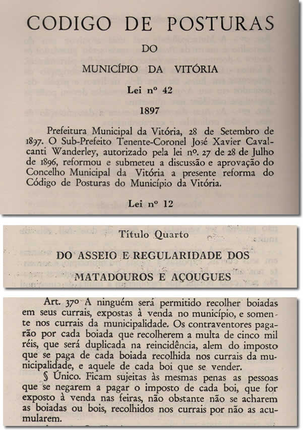 Dando continuidade a coluna de curiosidades vitorienses, publicaremos trechos do CODIGO DE POSTURAS do município da Vitória, datado de 1897. Os trechos foram retirados do volume 07 da revista do Instituto Histórico e Geográfico da Vitória, editada em 1977. São muitas curiosidades, que valem a pena serem disponibilizadas em nosso blog.