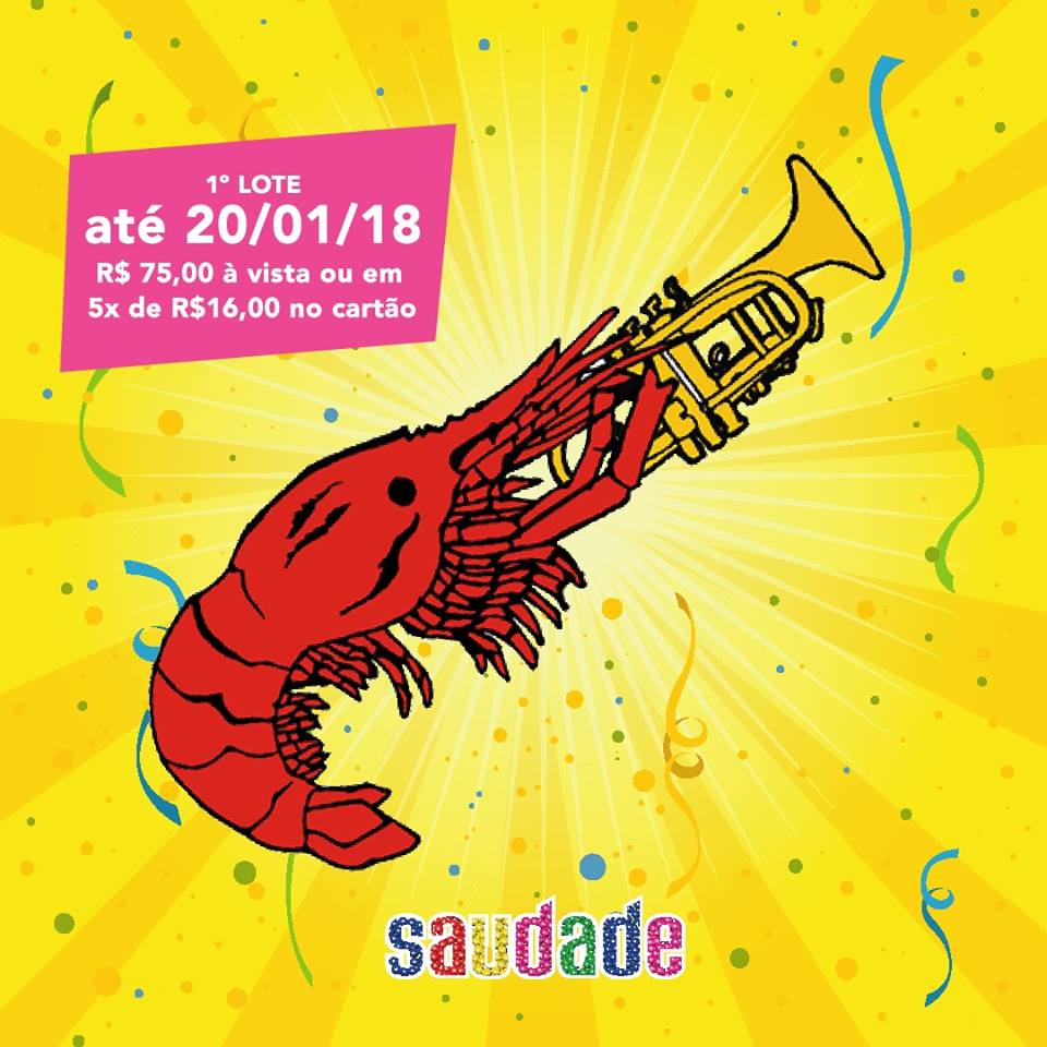 Aproveitamos para lembrar aos foliões que a promoção do primeiro lote da SAUDADE segue até o próximo sábado, dia 20 de janeiro.