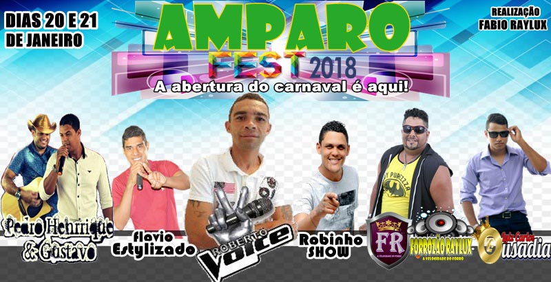 Nos dias 20 e 21 de janeiro, mais uma vez, acontecerá o Amparo Fest. Segundo o amigo e organizadores do evento, Fábio Haylux, entre outras coisas, o encontro dançante tem por objetivo levar alegria e animação ao bairro do Amparo e circunvizinhos, assim como valoriza os talentos da terra e, evidentemente, “esquentar” o carnaval 2018.