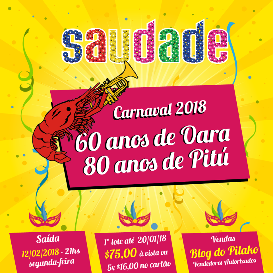 No transcorrer da semana iremos postar e divulgar o vídeo da nossa música – “Tô Na Saudade” – que, entre outras coisas, repercuti o nosso tema aos homenageados – 80 anos da Pítu e 60 anos Super Oara. Fazer carnaval não é só vender kit…….Como disse o eminente pernambucano, Nelson Rodrigues: “Sem paixão não dá nem para chupar um picolé.”
