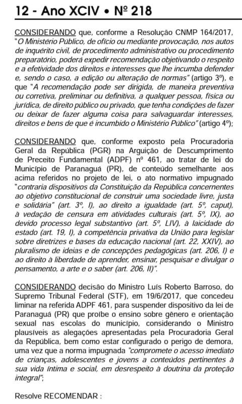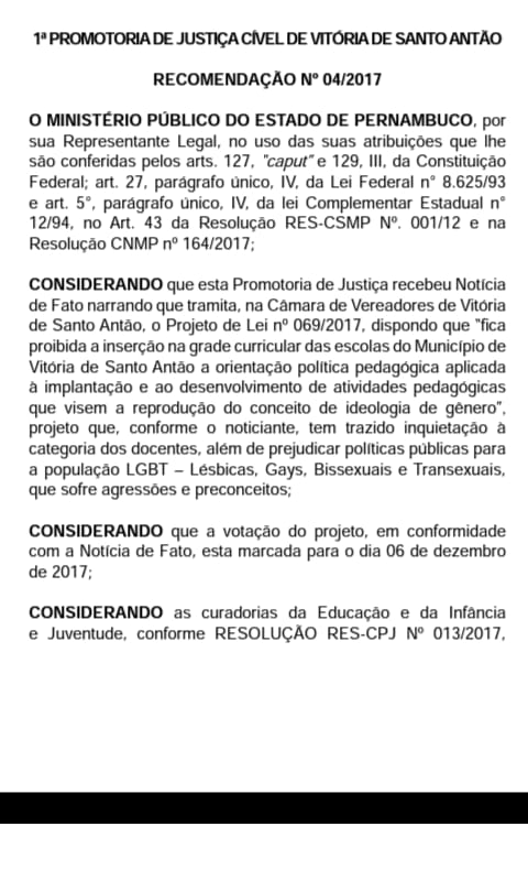 Independente da minha opinião sobre tal debate até porque, nesse caso, é o que menos devemos levar em consideração, gostaria de dizer que o Ministério Publico local, ontem (04/2017), emitiu recomendação aos vereadores pela rejeição da matéria. Ao prefeito, caso o referido projeto seja aprovado, que o mesmo use o seu poder constitucional de veto. Abaixo reproduzimos a recomendação MP.