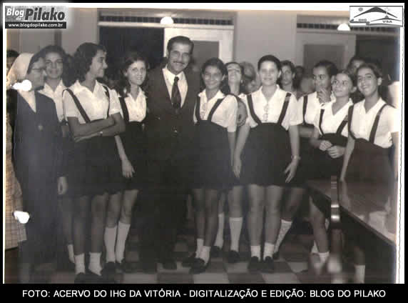 Prefeito Barreto, recebendo estudantes do Colégio Nossa Senhora da Graça – década de 1970.