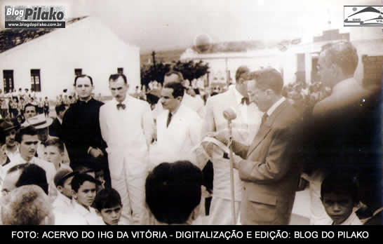 Fotografia tirada no dia “TRES DE AGOSTO” de 1950, por ocasião da inauguração do Busto do Pe. Felix Barreto. Falando: o autor do Projeto, José Bonifácio de Holanda Cavalcanti.