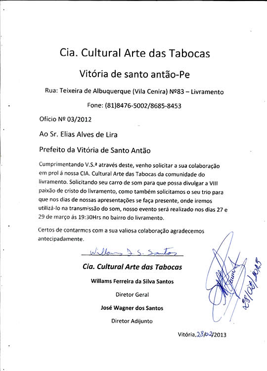 Muito bem, como é sabido por todos, vida de artista não é fácil, sobretudo os que moram numa cidade chamada Vitória de Santo Antão. Segundo o grupo, que há oito anos vem promovendo o evento no Livramento, até agora a Prefeitura não sinalizou com qualquer incentivo, muito pelo contrário, não deu nem resposta, já que ofícios foram entregues ainda no mês de fevereiro e até agora nada.