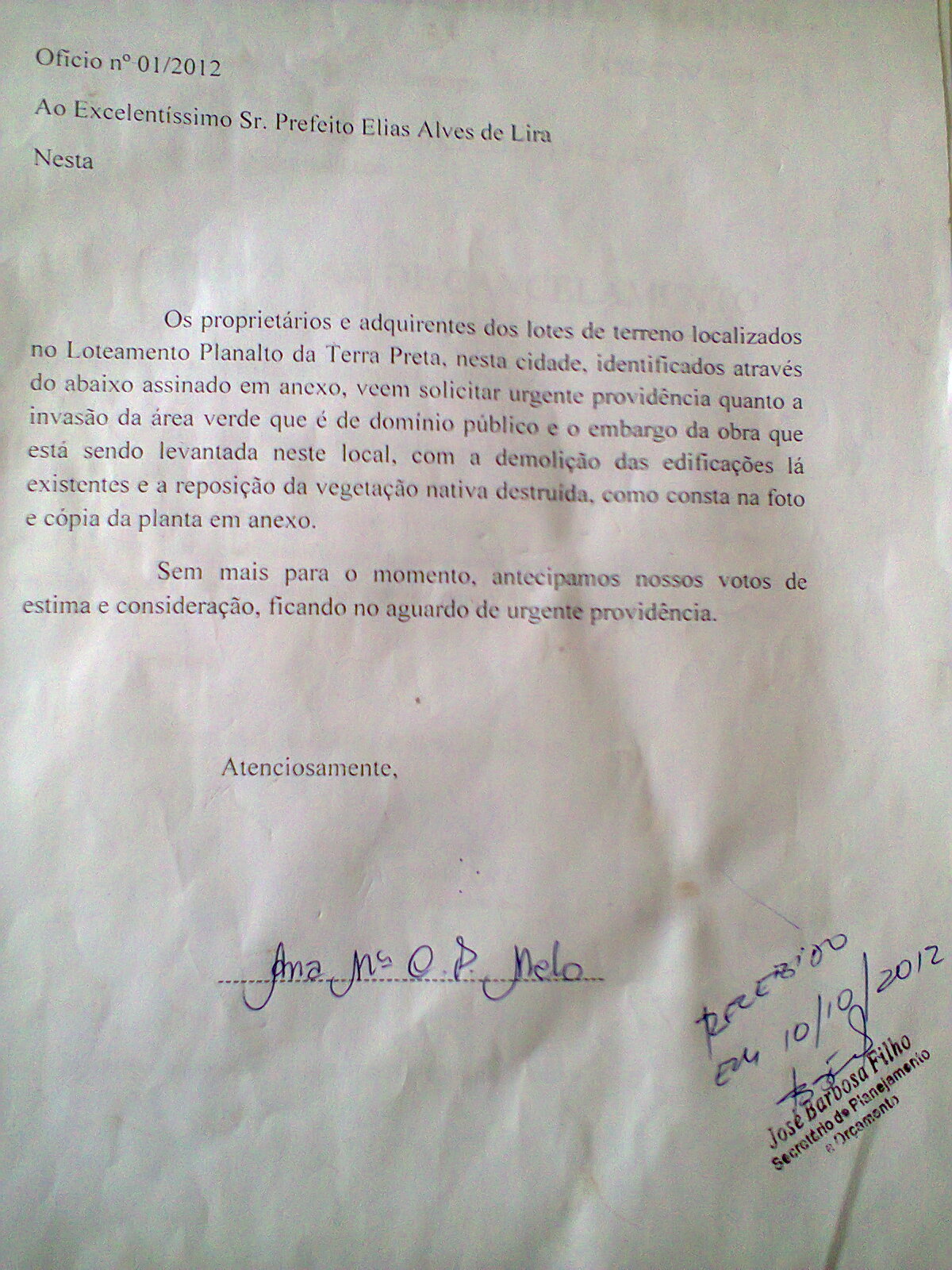 3. Conhecedora desse abuso e falta de respeito que estava acontecendo aos nossos olhos, moradores do loteamento terra preta, segue o exemplo que não devemos ser omissos a situações como esta.