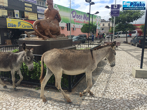 Na manhã da terça (26) nossas lentes registraram, em pleno horário comercial, dois burros circulando pela Praça Leão Coroado. Despreocupados com tudo e com todos, eles, deixaram seus excrementos no equipamento publico. O prefeito Elias Lira, a secretária de saúde, Vera Luci Lira e o Ozias Valentim, certamente, devem achar tudo isso lindo e maravilhoso, até porque essa trinca está há oito anos na prefeitura e com relação aos animais de grande porte, soltos nas ruas, continua a MESMA BOSTA da gestão anterior.