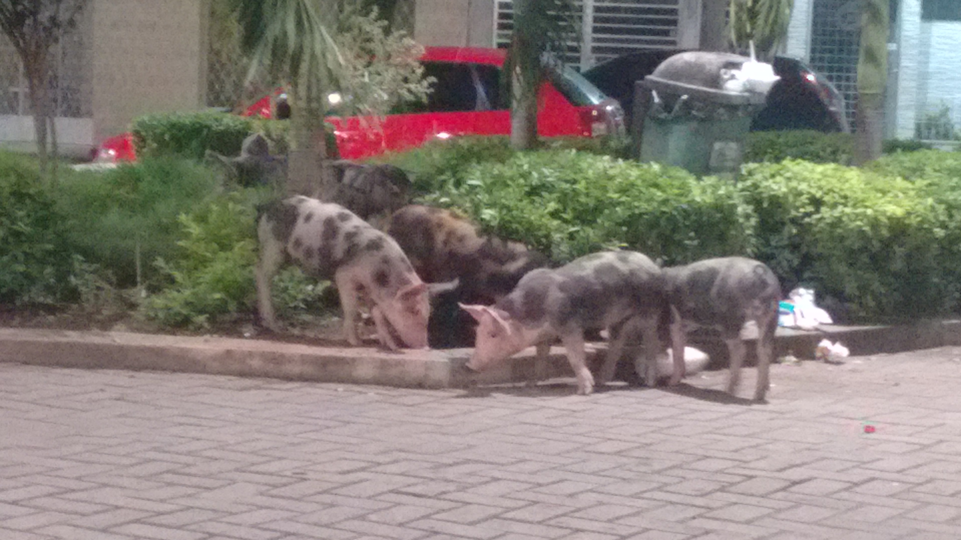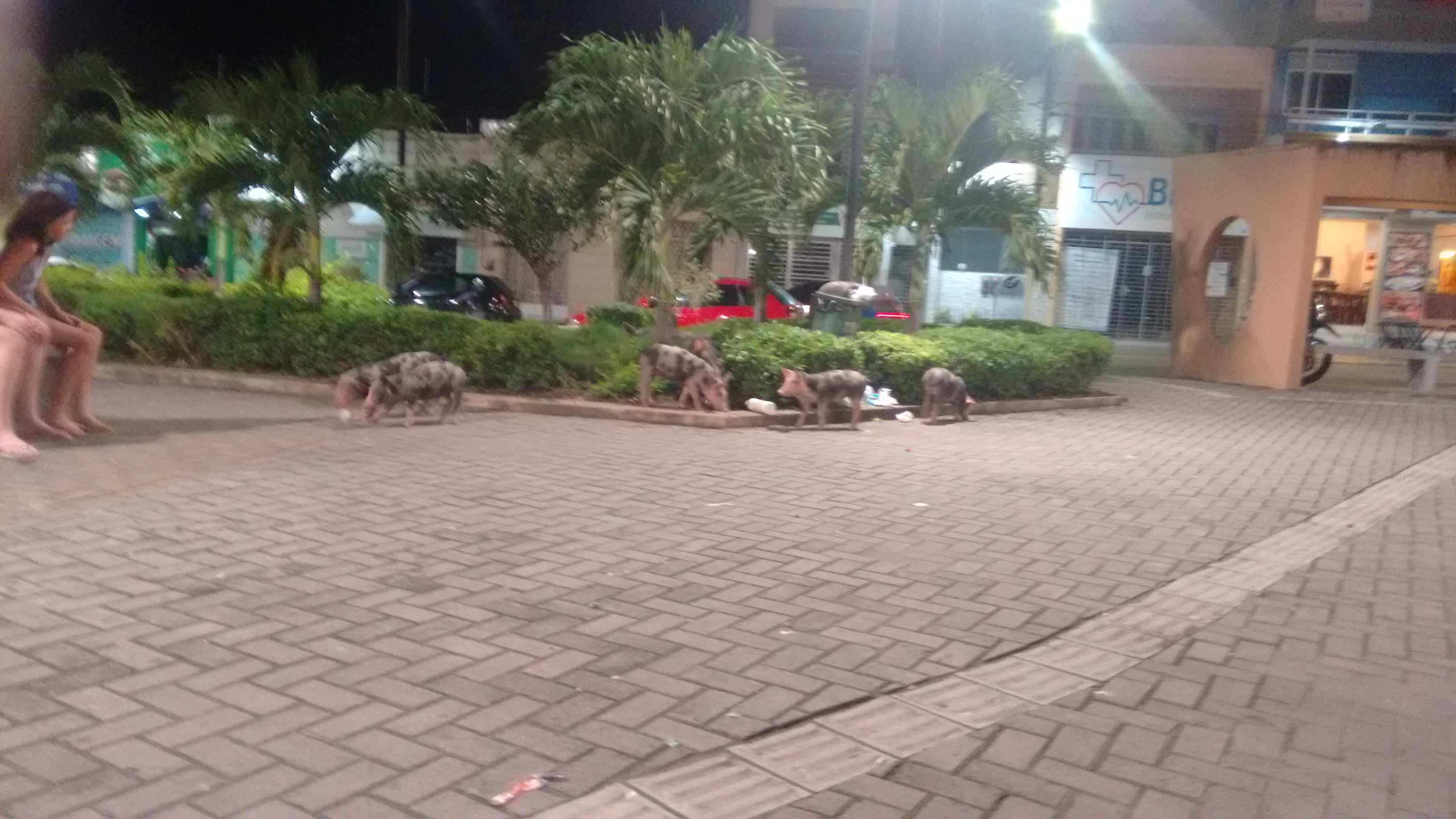 “Pilako, as fotos não são novas foram registradas no último dia 31 de maio. Mas não é difícil de vê-los na mesma situação, esses porquinhos quase todos os dias visitam a Praça da Matriz, quase sempre no mesmo horário……..o Joselito, coitado, não pode fazer nada……”