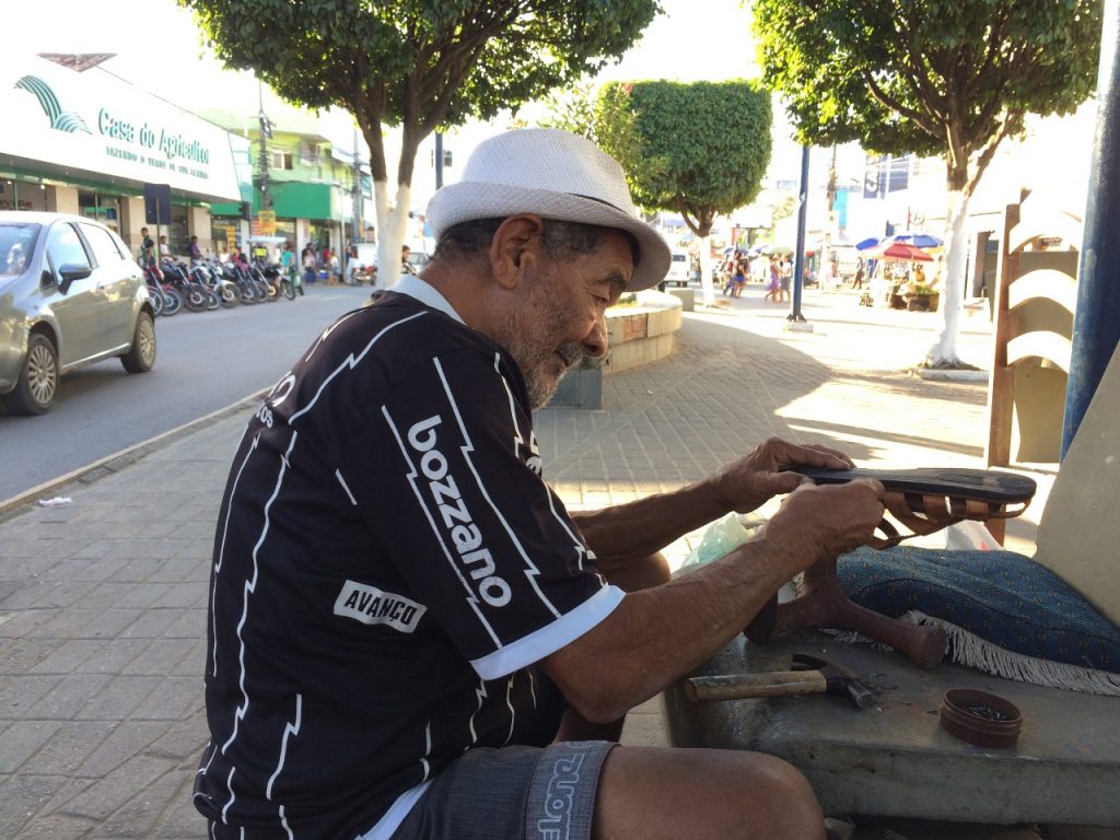 Na sua arte e no seu ofício o nosso amigo Babai continua forme e forte. Por ocasião de um reparo numa sandália de couro, na tarde de ontem (19), utilizei-me dos seus serviços. Atencioso como sempre Babai é uma espécie de cartão postal da nossa Avenida Mariana Amália.
