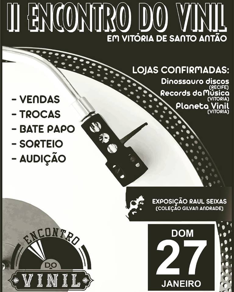 Com uma exposição especial sobre o eterno Raul Seixas – itens especiais -, pertencentes ao colecionador antonense, Gilvan Andrade, o amigo Raphael Oliveira convida os apreciadores do bom bate papo para o Segundo Encontro do Vinil da Vitória de Santo Antão. O evento acontecerá no tarde (15h) do domingo, 27 de janeiro, na Loja Grão de Ouro que fica localizada Vital de Negreiro – conhecida como “Rua da Águia”.