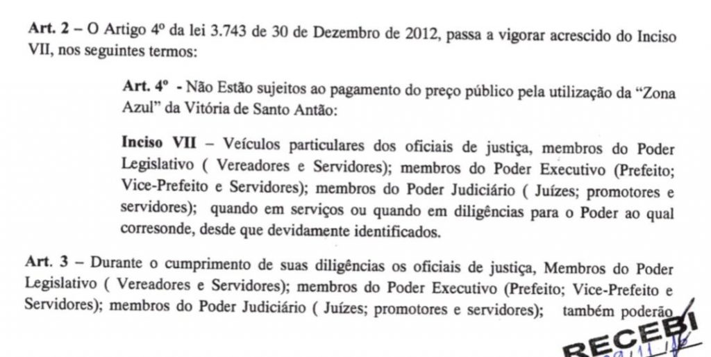 Na qualidade de internauta, ontem (10), recebi um vídeo postado pelo vereador André Carvalho em que revela existir na nossa cidade uma Lei isentando vereadores e prefeito do pagamento da taxa do estacionamento da chamada “zona azul”. Ainda no vídeo, o referido parlamentar diz que vai tentar reverter ao que chamou de “privilégio”, ao passo que pede apoio na divulgação dessa empreitada. Veja o vídeo.