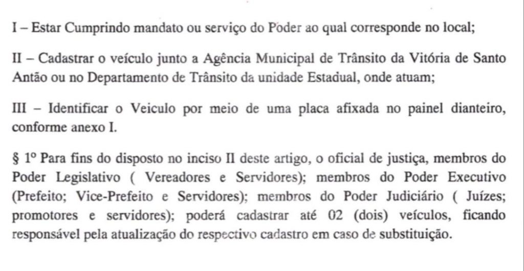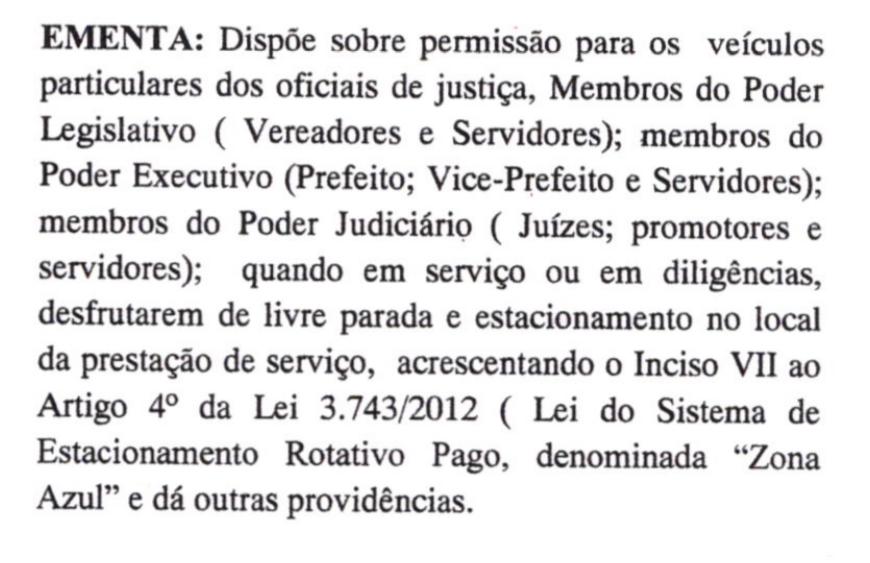A lei em tela é tão “desafinada” que ao mesmo tempo que diz que o agente público (para ser contemplado) precisa estar no desempenho da sua função, diz que o mesmo poderá cadastrar até dois veículos. Algo bastante curioso, no sentido da efetiva fiscalização, tanto no controle cadastral quanto na rua, pela funcionaria da AGTRAN.