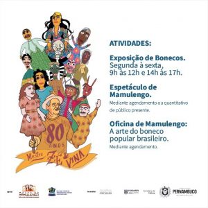 Para isso, terá espetáculos, oficinas e uma exposição especial com a coleção de bonecos do Mestre Zé de Vina e o Mamulengo Riso do Povo. São quase 70 anos de história! Nesses próximos cinco meses, as ações serão ONLINE, pois a Pandemia obrigou a coordenação do projeto a readaptar as ações. Então, fica ligado nas redes sociais do @museudomamulengo.