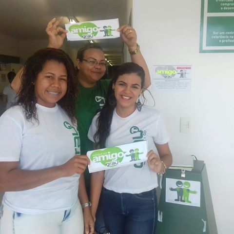 As alunas do Curso Técnico em Enfermagem, turma ENF 07, ganhadoras da Campanha “Indique um Amigo”: Dayane, Taciana e Darliane. Parabéns, meninas! #GrauTécnico