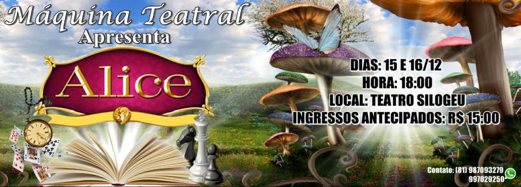 Máquina Teatral: Alice – Teatro Silogeu – 15 e 16 – 18h.
