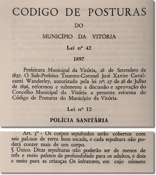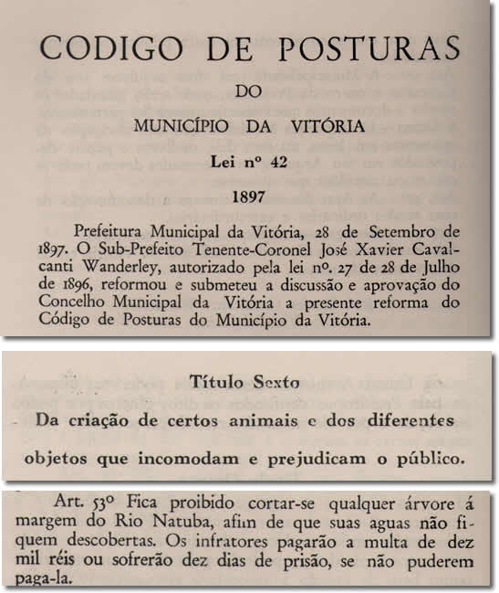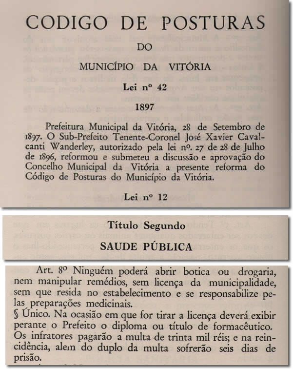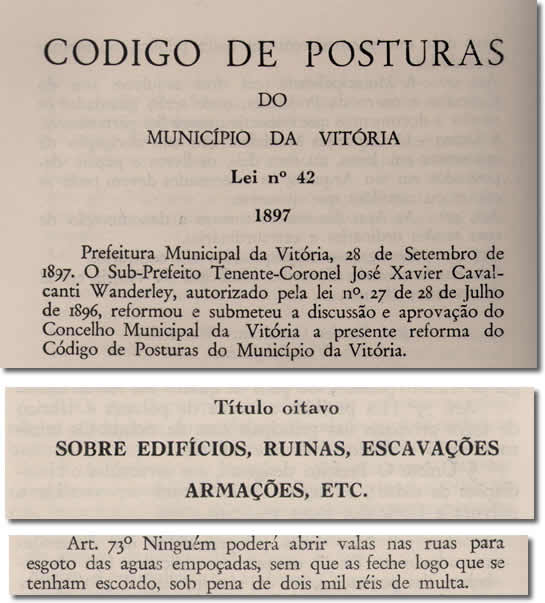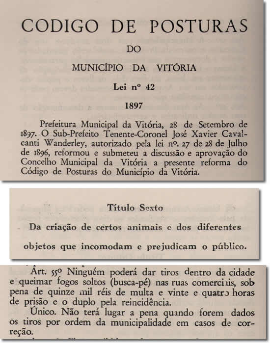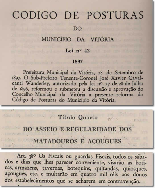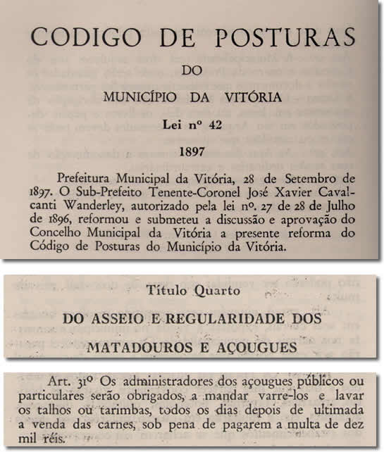 Segue trechos do CÓDIGO DE POSTURAS do município da Vitória, datado de 1897. Os trechos foram retirados do volume 07 da Revista do Instituto Histórico e Geográfico da Vitória, editada em 1977. São muitas curiosidades……..
