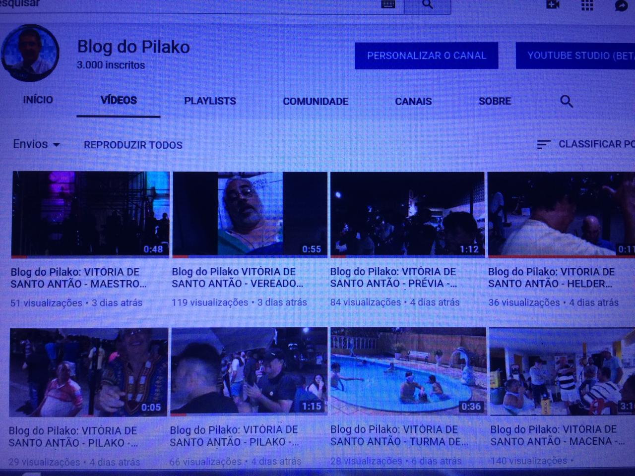 Uma marca alcançada que deve ser considerada e festejada. Chegamos ao vídeo de número 3.000 no nosso canal de youtube. Ao longo desses quase sete anos e meio do Blog do Pilako (no ar) é como se todos os dias, ao longo desse tempo, tivéssemos postado um vídeo todo santo dia (média 1,1/dia).